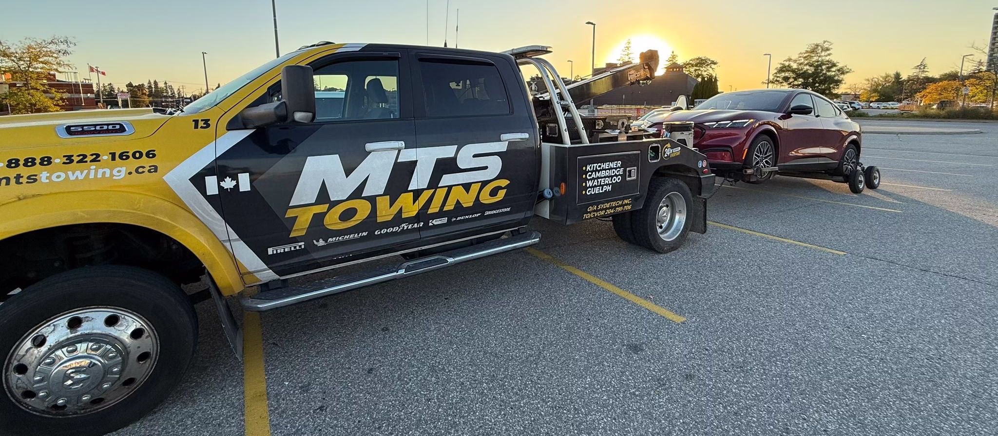 Yes. MTS Towing operates around the clock, offering 24/7 towing and roadside assistance for all vehicle types across the Kitchener–Waterloo Region, Cambridge and Guelph.